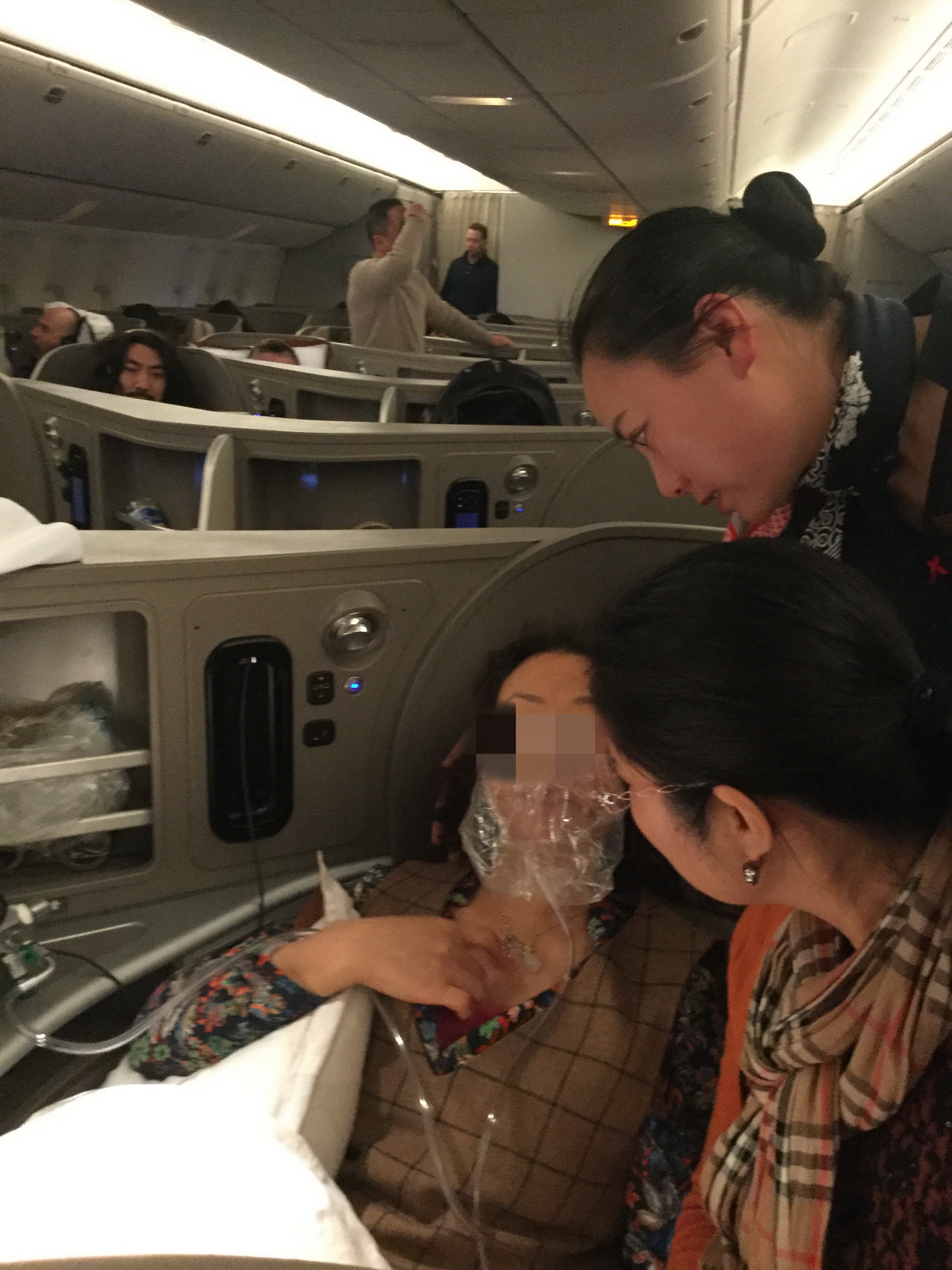 飛行途中,這名旅客突然感到身體不適,出現呼吸困難,一度抽搐昏迷,情況十分危急。東航機組第一時間實施了緊急救治,并將她從經濟艙轉移到公務艙平躺休息,還通過機上廣播尋找到一名醫生共同參與救治。